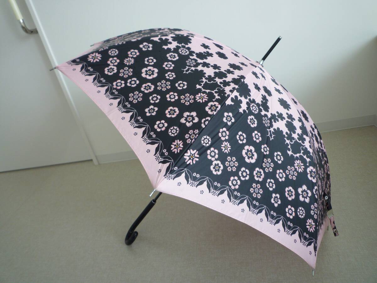 > LANVIN(ランバン)☆長傘☆濃ピンク×黒☆花柄シルエット風