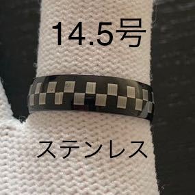 - 【r93】ステンレス シルバー チェッカー リング 指輪 ブラック 14.5号