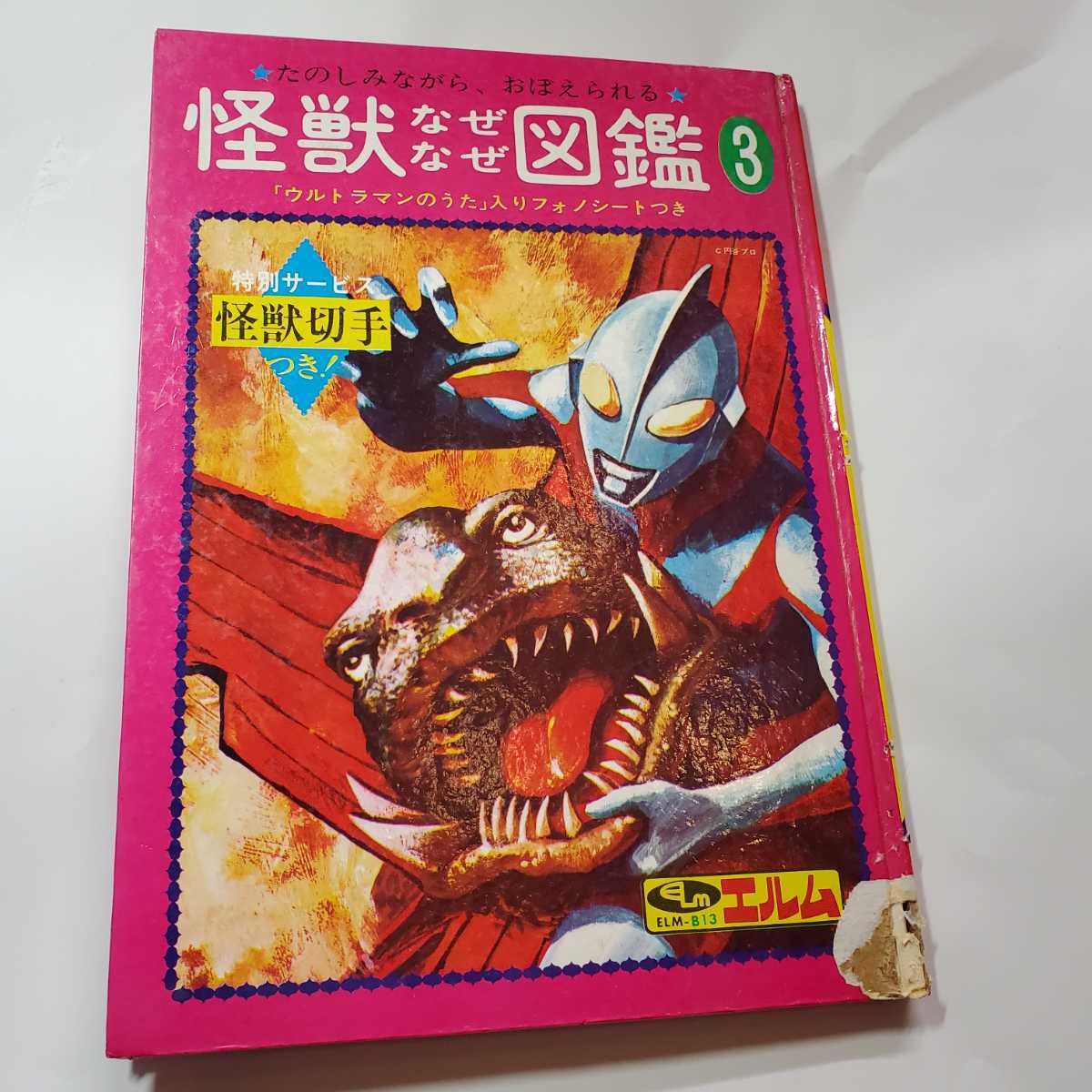 - 7599-2 希少 初版 怪獣なぜなぜ図鑑 3 株式会社エルム 怪獣切手・フォノシートつき