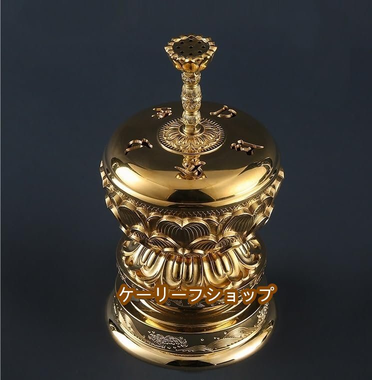 - 【ケーリーフショップ】密教法具 寺院仏具 仏壇 香炉 大悲香炉 彫刻入 磨 仏具 具足 仏壇用 金色 真鍮製