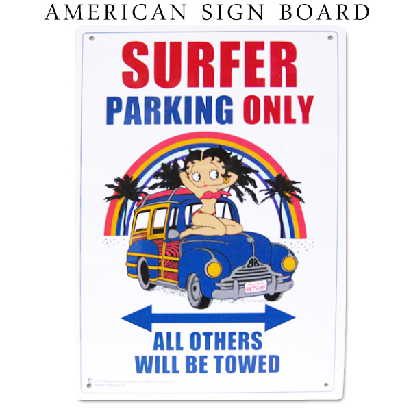 - 看板 店舗用 サインボード サーファーパーキング BETTYBOOP 専用駐車場 サーフィン 海 サインプレート 西海岸風 インテリア アメリカン雑貨