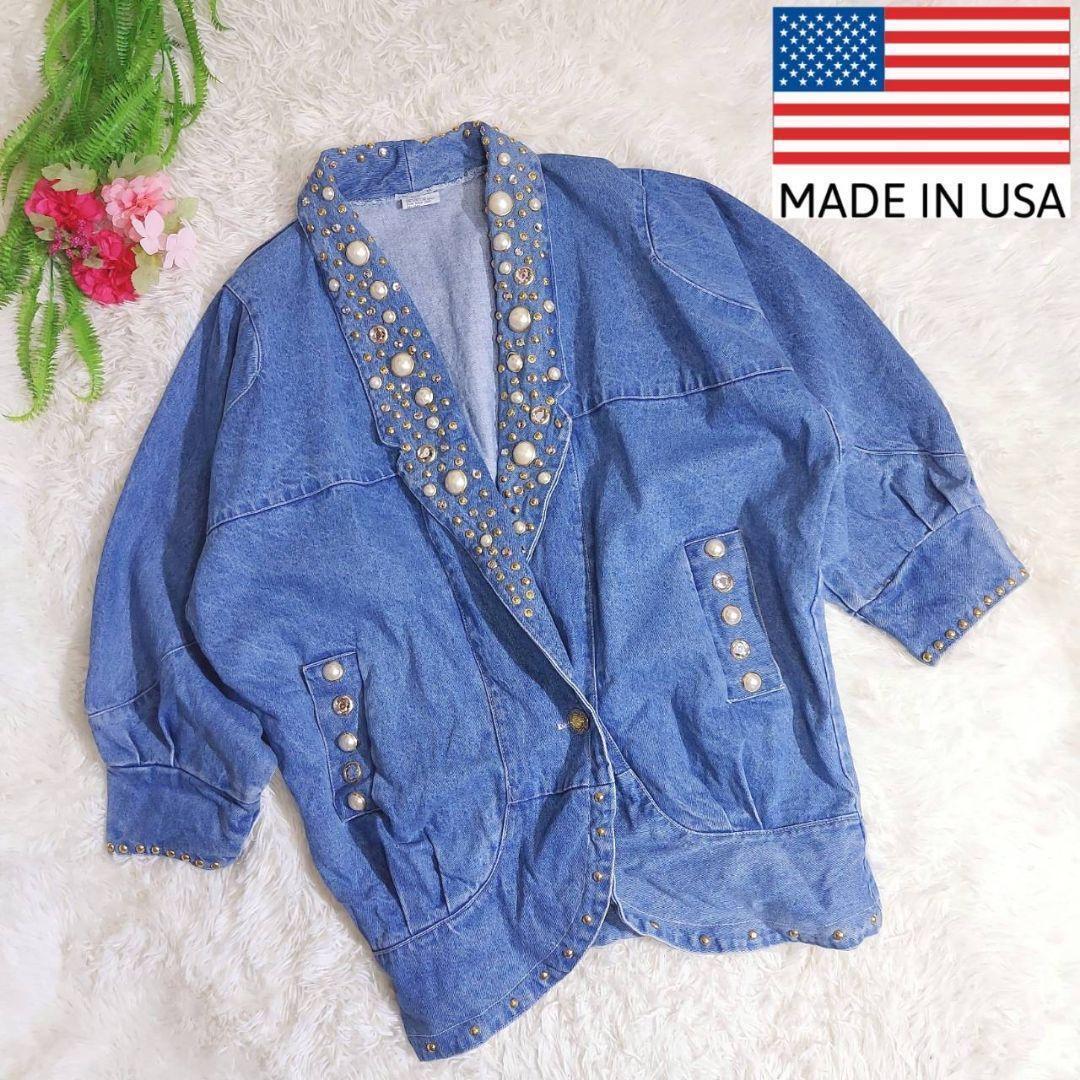 - USA製 ジュエリー調スタッズ飾り オーバーサイズ デニム素材ジャケット 7642