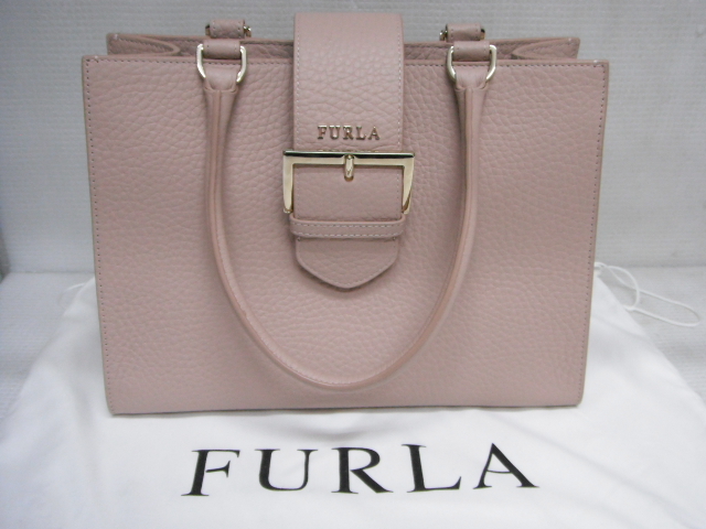 > 美品 FURLA フルラ トート ハンドバッグ ピンク レザー F7578 G7-B