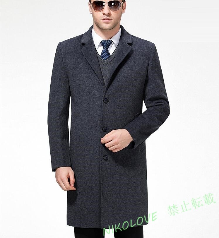 - 新品 メンズ コート 高級 ウール テーラードコート カシミヤ ロングコート ジャケット柔らか ラシャー 紳士 ビジネスコートグレーAA662