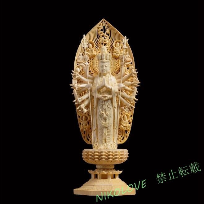 - 新品 極上品 仏教美術 千手観音菩薩 精密彫刻 仏像 手彫り 木彫仏像 仏師手仕上げ品AA723