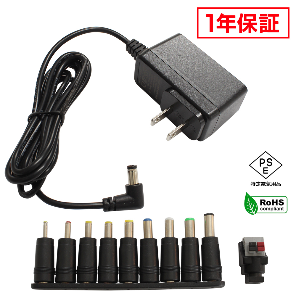 - ACアダプター 汎用電源 9V 1A 9W L型コネクタ 10種セット 5.5mm 2.1mm PSE認証 1年保証