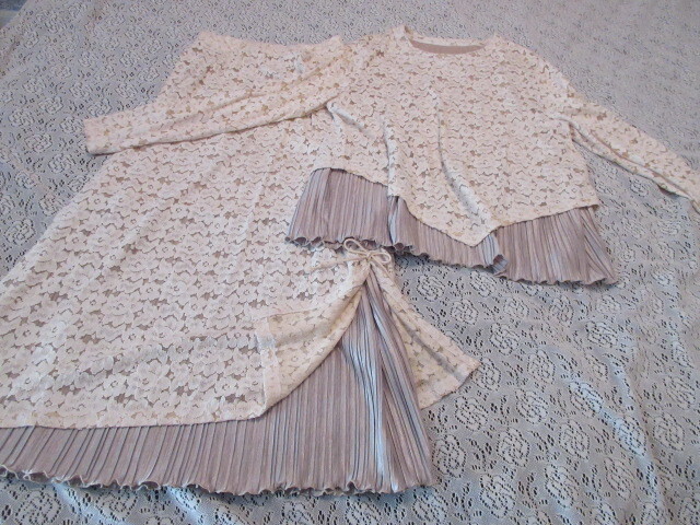 > A)■【・・・】■手洗い可能/綿65%レーヨンポリ■アイボリー/ネットレース&プリーツの異素材コラボ!■スーツ/フォーマルワンピース■