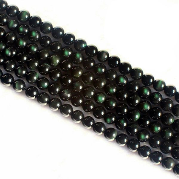 - [EasternStar] 海外発送 7A レインボー オブシディアン 黒曜石 緑目 グリーンアイ 玉サイズ14mm 1連売り 長さ約40cm