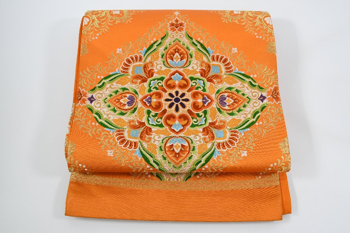 - 袋帯 未仕立て 六通柄 更紗 西陣 振袖 帯丈448cm ★着物屋 ne-8525 桜庭呉服店