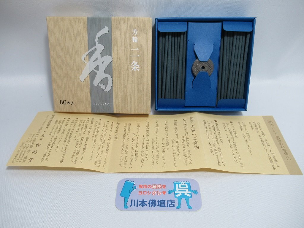 - 川本仏壇店「芳輪 二条/スティック型/80本入/香立付」松栄堂製 線香/抹香 薫香 香具 薫香 聞香 室内香/川本仏