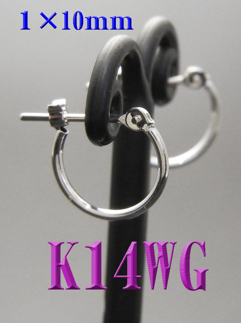 > 限定特価!K14WG 14金ホワイトゴールド 1x10mmフープピアス 新品 日本製 スナップピアス
