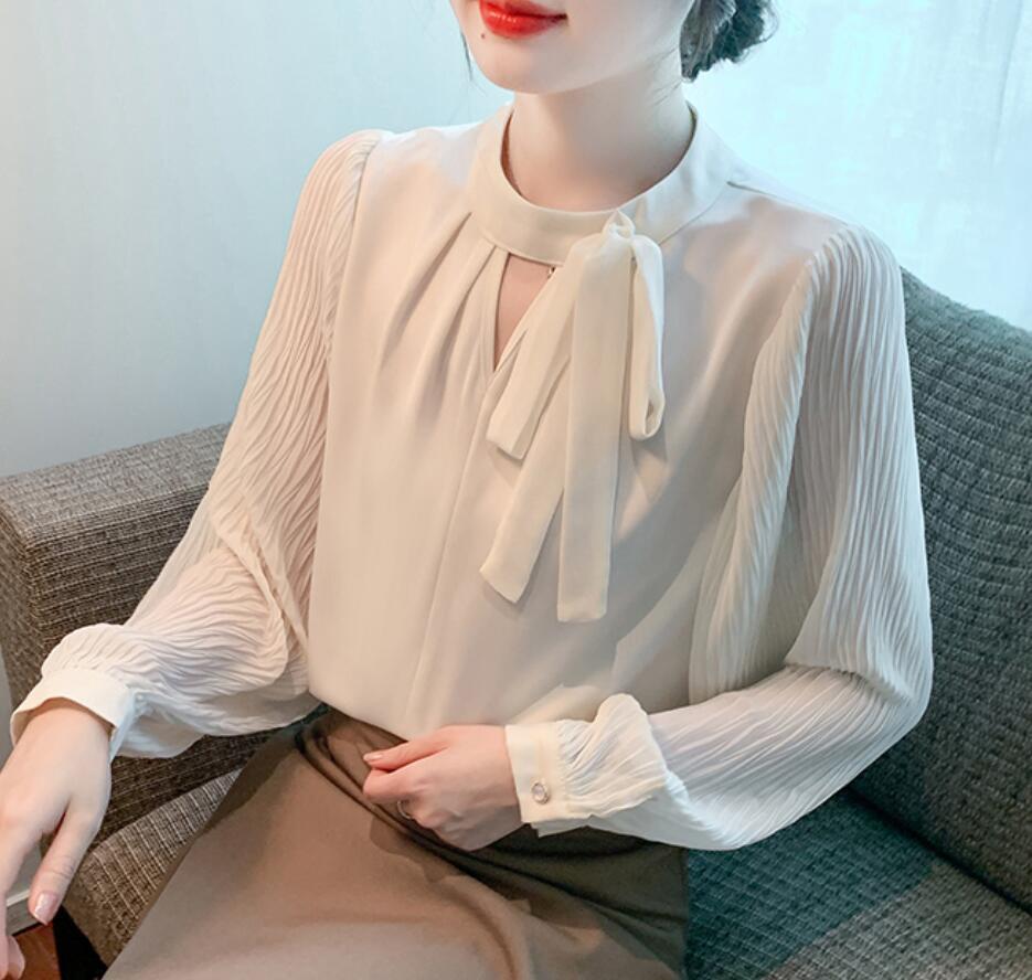 - 春新作 優雅で オフィス シフォン ブラウス ボウタイ リボン 長袖 ブラウス 30代 40代 通勤 OL 着やせ オシャレ トップス / S-2XL