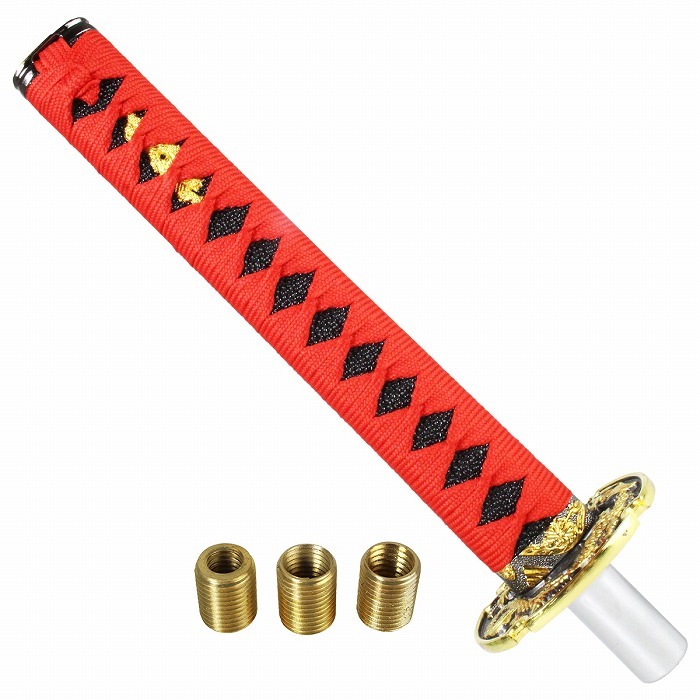 - 日本刀 AT MT 対応 延長 シフト ノブ 300mm ロング 赤×黒 刀 トラック 軽トラ 乗用車 軽自動車 和柄 オートマ マニュアル