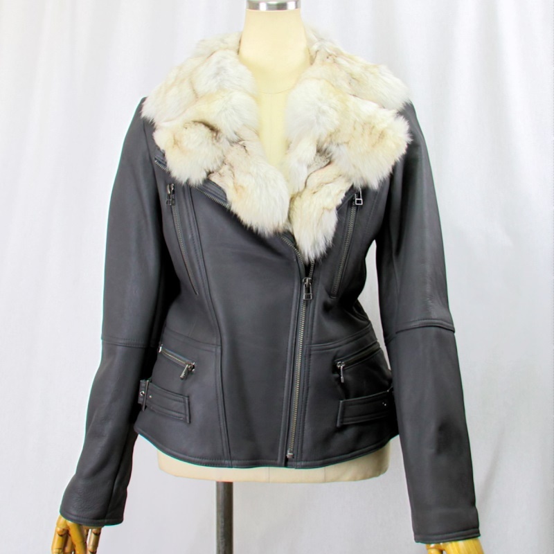 - ★毛皮 ムートン 羊革 フォックス リアルファー ダブルフェイス 1枚革 ムートンジャケット フォックストリム★