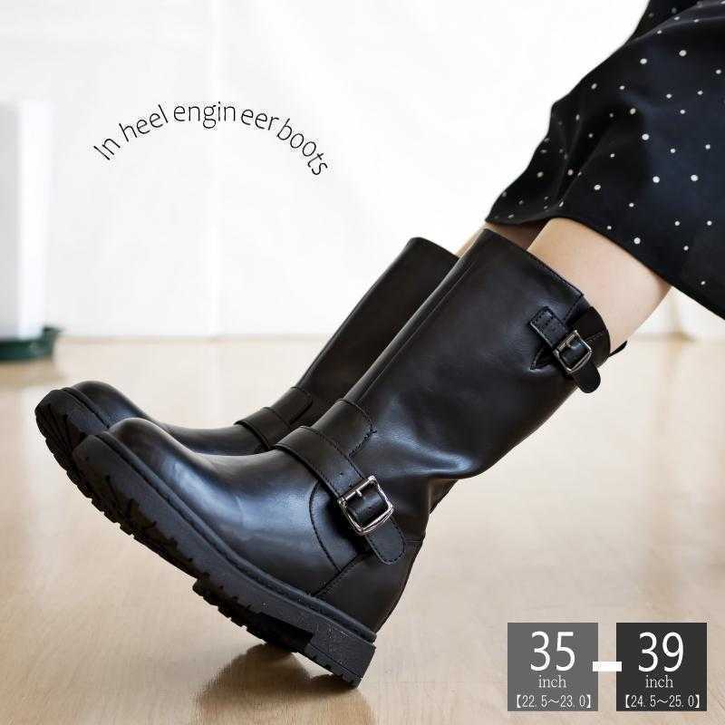 - 新品送料無料♪超人気 インヒール エンジニアブーツ ミドル 黒ブーツ BOOTS 225cm