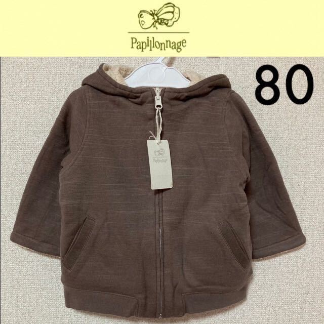 > 新品タグ付き☆papillonnage 裏ボアパーカー ブルゾン 80 パピヨナージュ fas ファス