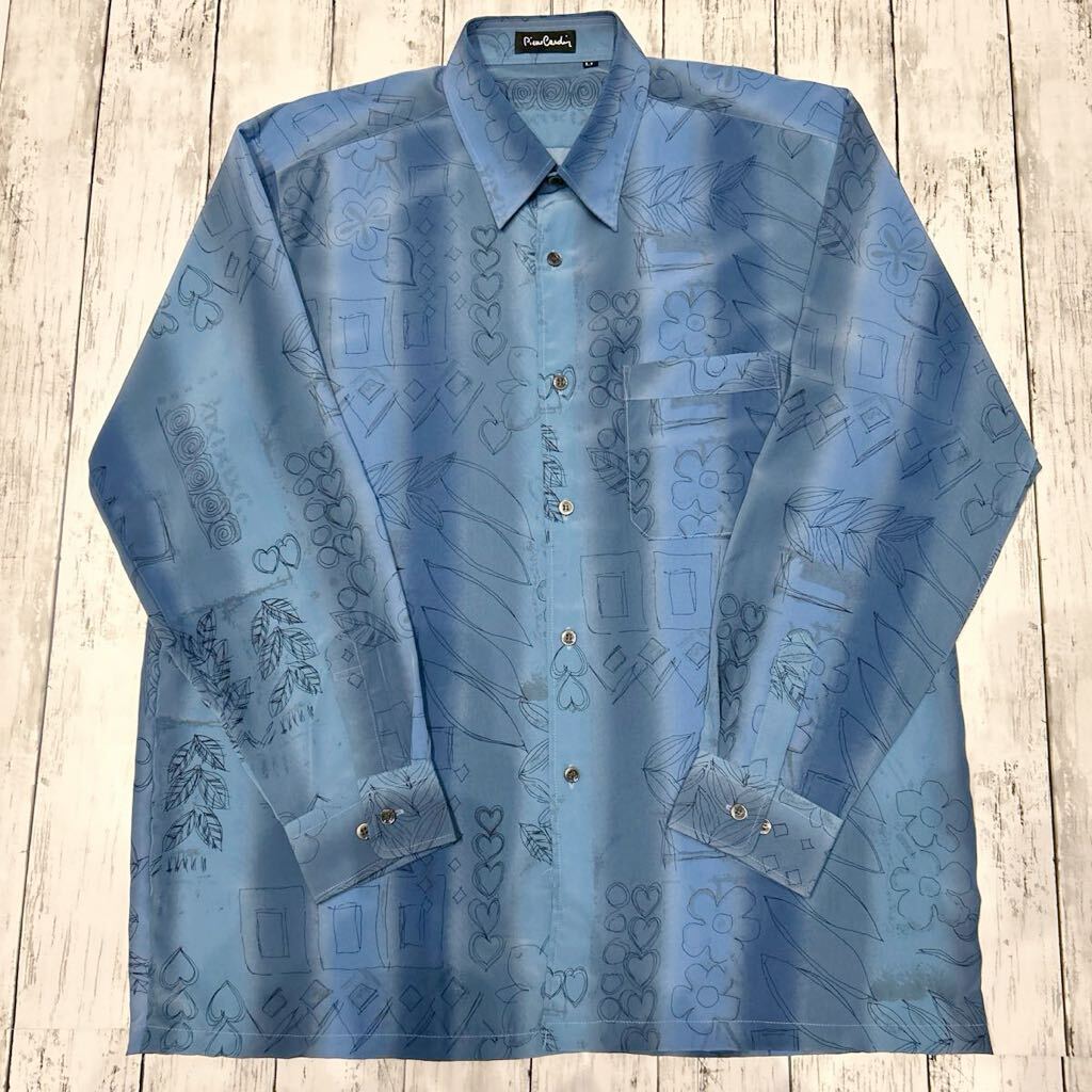 > Pierre Cardin ピエールカルダン 総柄 柄シャツ ハート クローバー レトロ アート ビンテージ 長袖シャツ ポリエステル100%