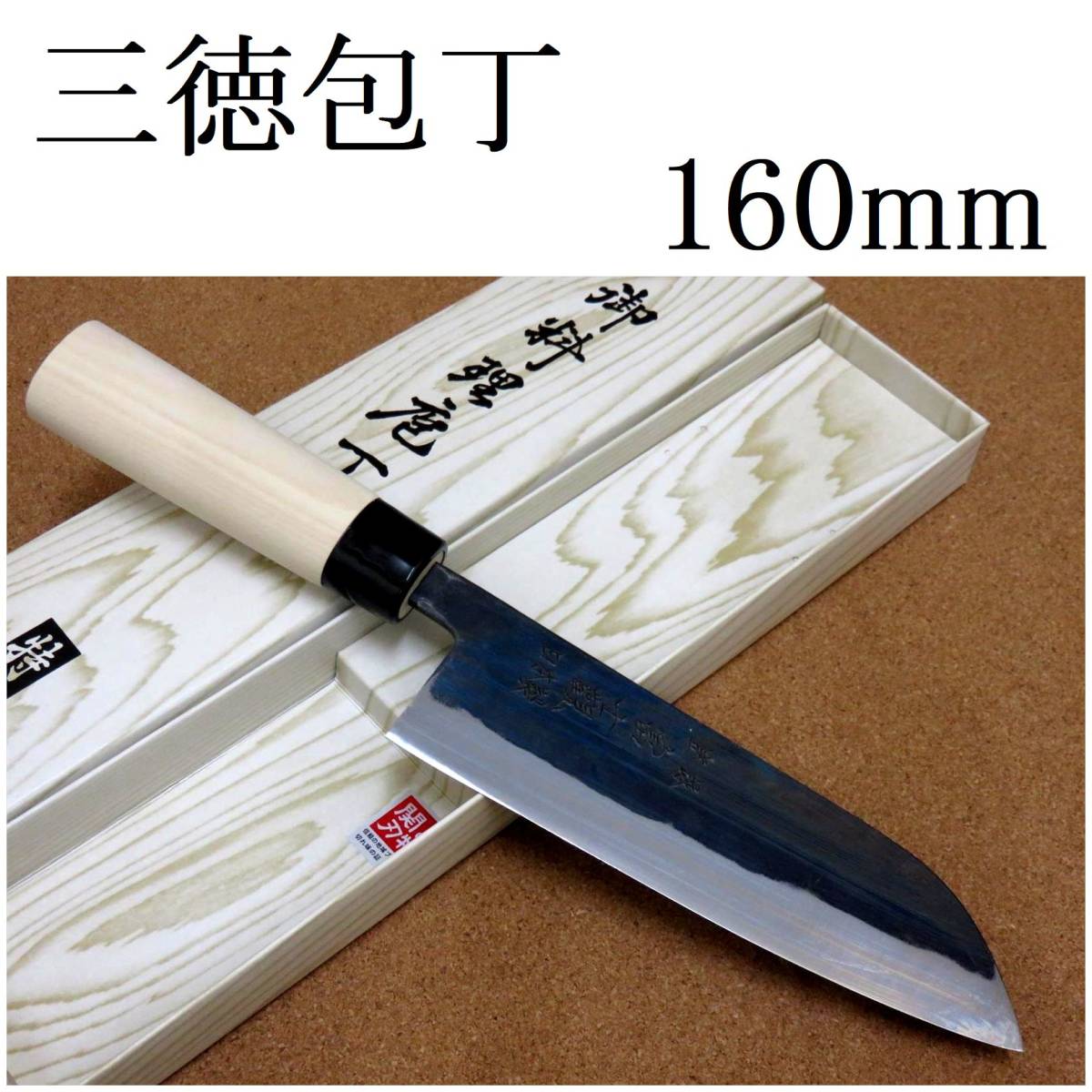 - 関の刃物 三徳包丁 16cm (160mm) 富士觀 黒打 青紙2号 軟鉄 朴の木 口金付き 家庭用 野菜 魚の処理 肉切り 両刃万能包丁 文化包丁 日本製