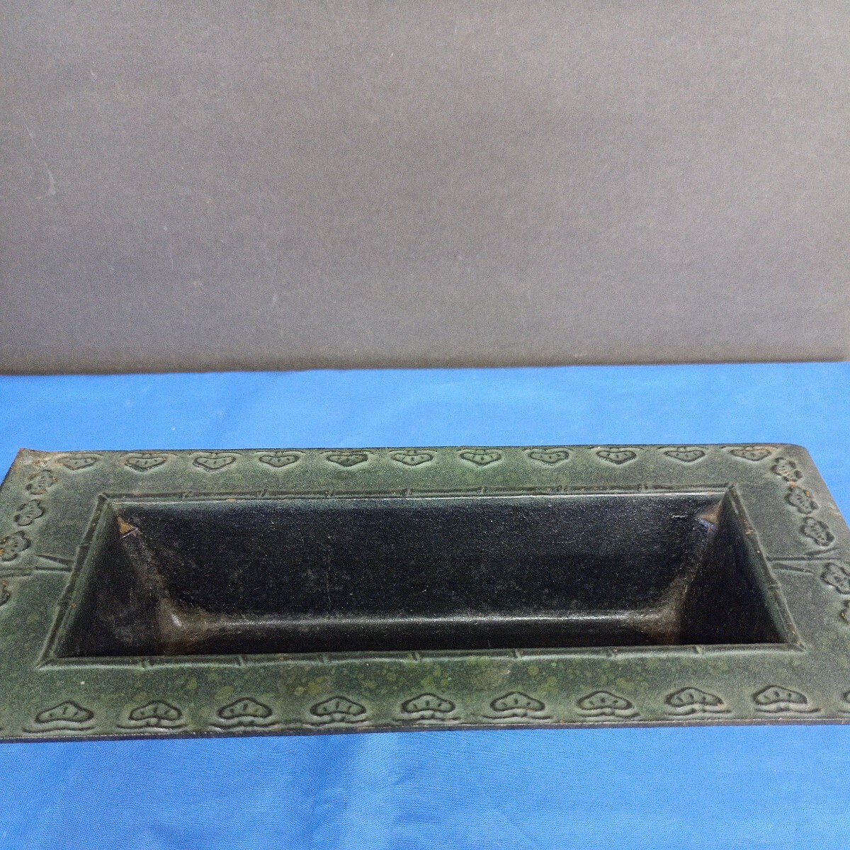 - 昭和レトロ■万右ヱ門 鉄器 青銅風 小物入れ ペン入れ