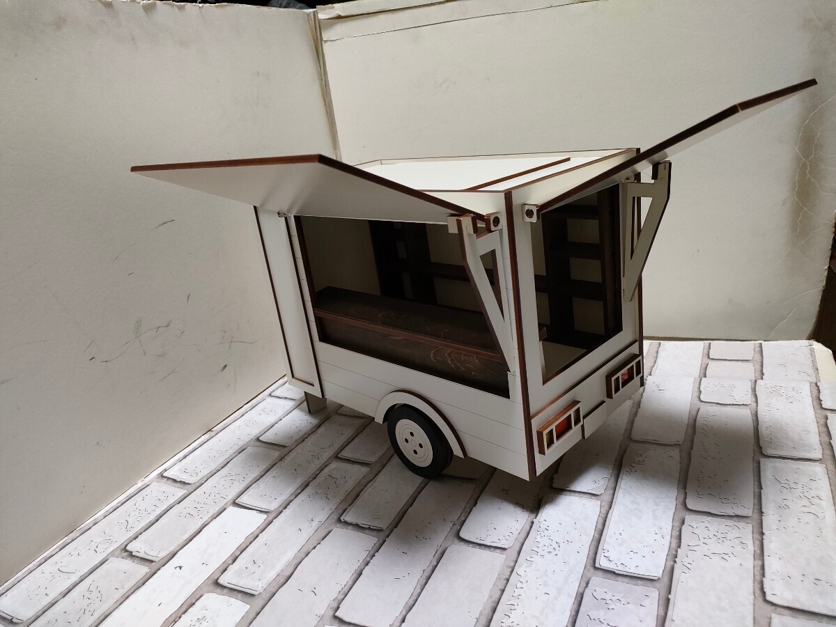 - 1/10木製ドールハウスキッチンカー 約W295D158H232ミリ