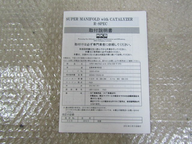 > ZN6 86 (ZC6 BRZ) スーパーマニホールド with キャタライザー R-SPEC 取付説明書