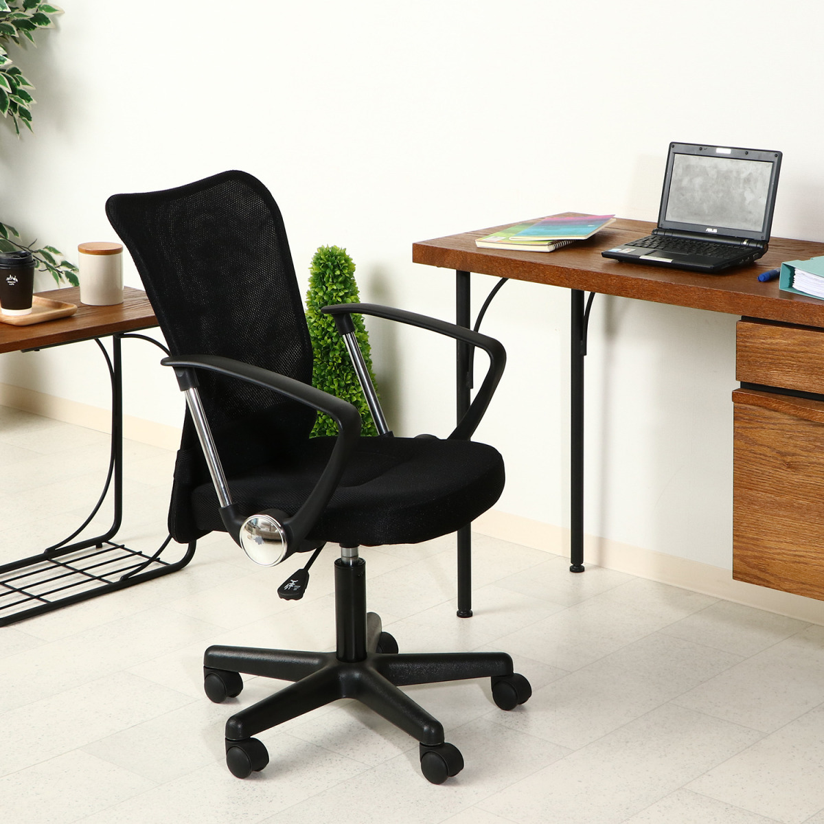 - メッシュチェア 肘付き ミドルバック ブラック【新品】【送料無料】(北海道 沖縄 離島は別途送料)