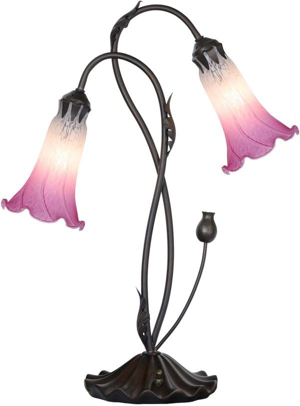 > Byeeee ステンドグラス テーブルランプ テーブルライト スタンドライト アンティーク レトロ 常夜灯 朝顔 LED対応 ステンドグラス ピンク