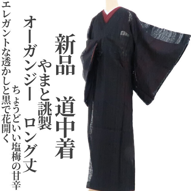 - tomihisa 新品 やまと誂製 オーガンジー 着物 正絹 ロング丈 仕付け糸付“エレガントな透かしと黒で花開く塩梅の甘辛”道中着 3259