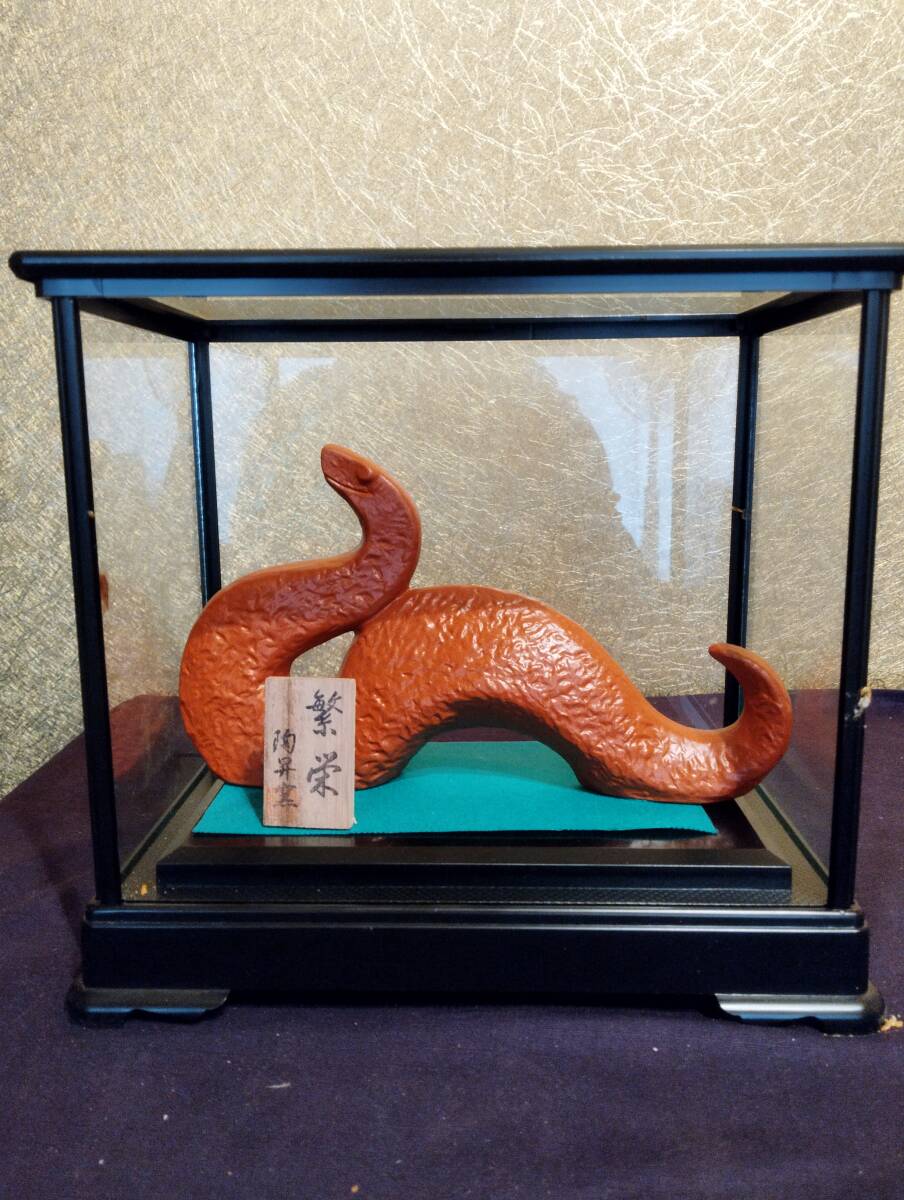 - 干支置物 巳年 へび 十二支 置物 風水 赤泥 陶器 インテリア 小物 玄関 招福 開運 工芸品