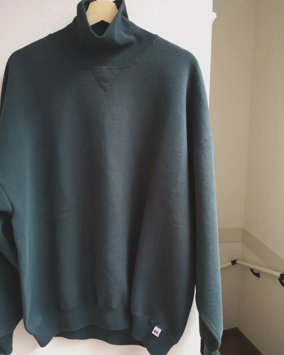 - 即決 90年代 ラッセル USA製 XXL ビンテージ スウェット タートルネック グリーン 無地 チャンピオン リバース リーバイス