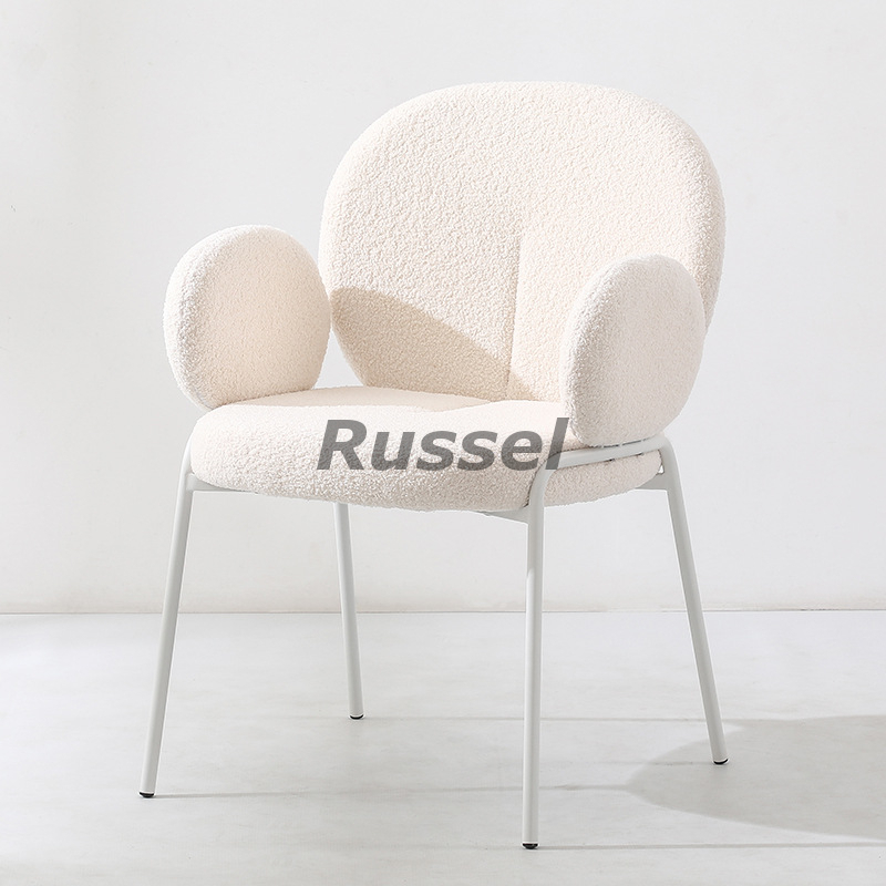 - ダイニングチェア もこもこ 肘付き おしゃれ かわいい インテリア 北欧 韓国 リビングチェア ドレッサー チェア 食卓 椅子 白 ホワイト