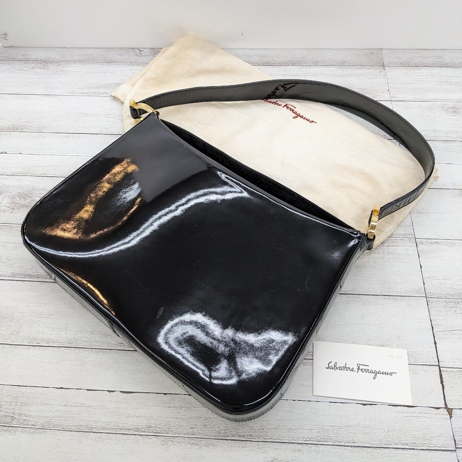- Salvatore Ferragamo サルバトーレフェラガモ エナメル レザーバッグ ンドバック ワンショルダーバッグ DD 21 8166 ブラック