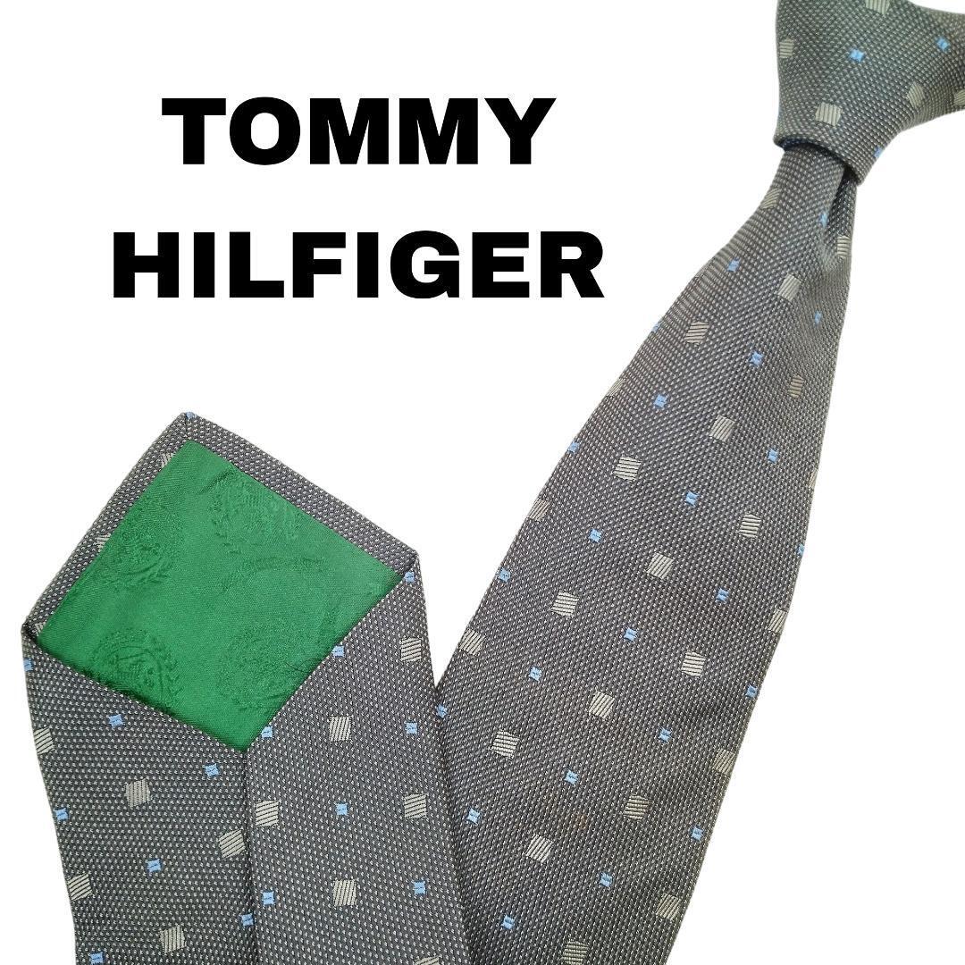 - トミーヒルフィガー ネクタイ 小紋柄 スクエアドット柄 グレー 総柄 u60