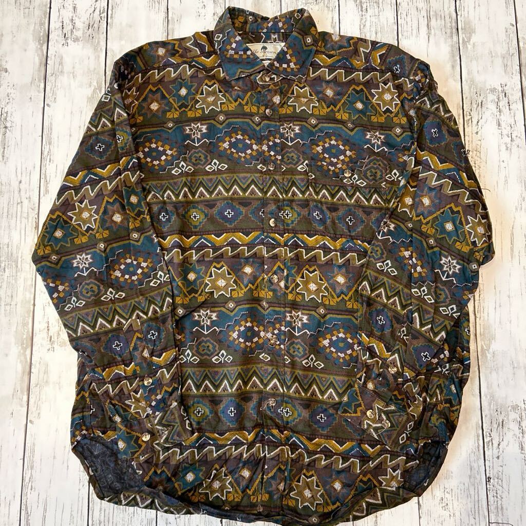 - The Browns 総柄 柄シャツ 民族 レトロ アート ビンテージ 長袖シャツ Double Needle Sewing
