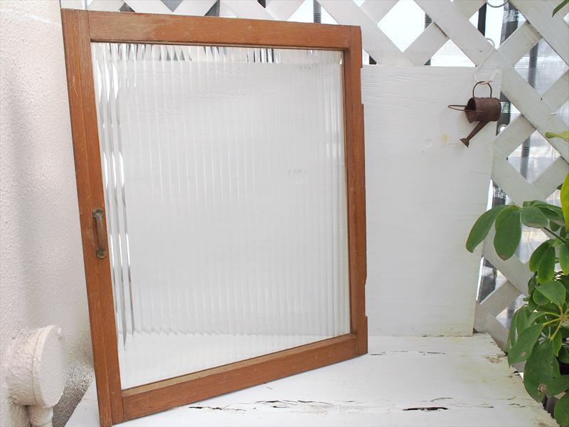 - レトロビンテージ雑貨*モールガラス入り木枠・41.3×50・D☆開き戸建具窓扉インテリアディスプレイDIY