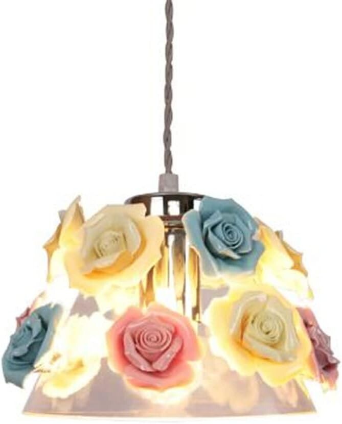 - OTD ペンダントライト ガラスシェード セラミック花付き 1灯 北欧 おしゃれ 吊り下げ 照明器具 LED【クリアー、ダクトレール用】