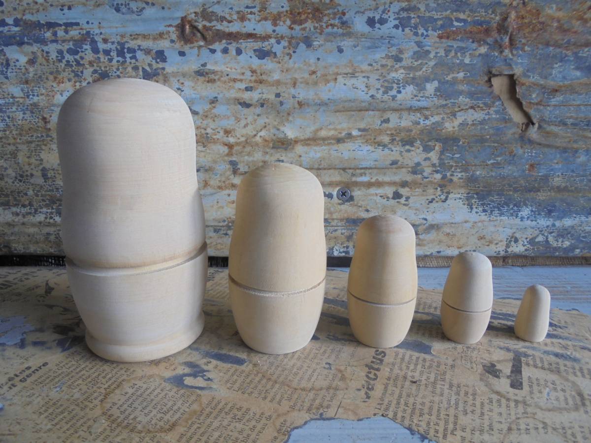 - 【フランス蚤の市 ロシアのマトリョーシカ】無垢材ロクロ入れ子5個コケシ人形古道具アンティークインテリアカフェ店舗什器バー