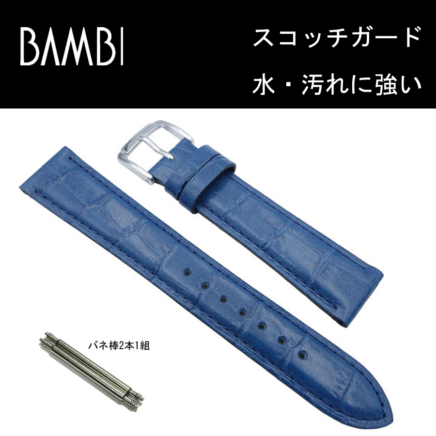 - [バネ棒付] 18mm BKME051DP ネイビー バンビ カーフ型押 スコッチガード 新品未使用正規品 送料無料