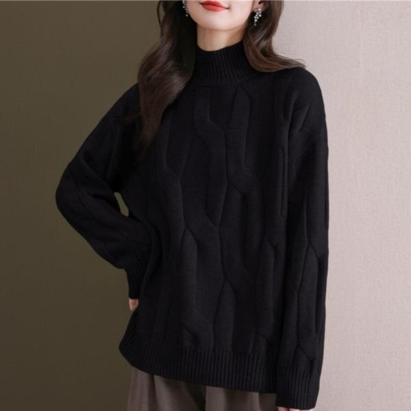 - LB537 春 ニットセーター レディース トップス 長袖 きれいめ 柔らかい ゆったり ルーズ セーター 厚手 黒