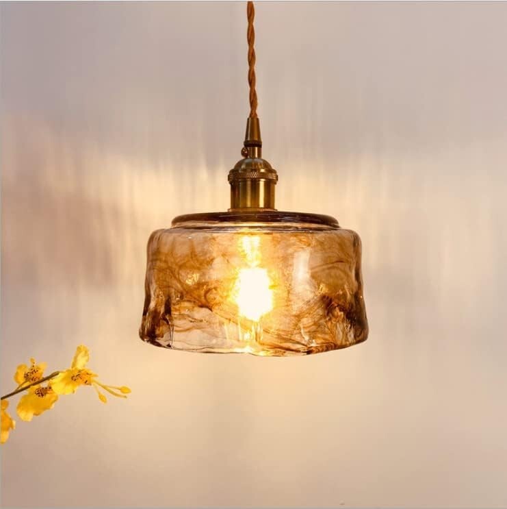 - chedar ペンダントライト 琥珀色 ガラス レトロ 天井照明 北欧 アンティーク おしゃれ シンプル クリアガラス LED 真鍮 手作り【C型】
