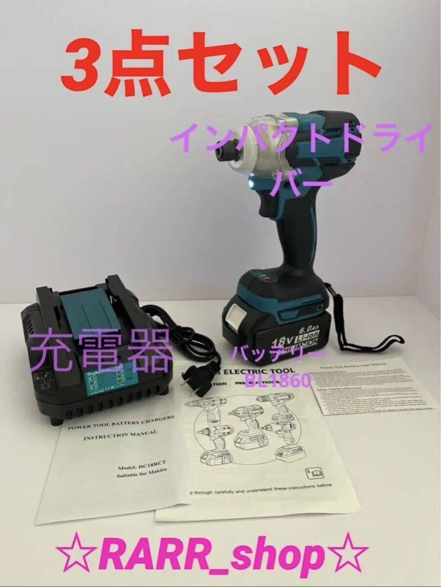- インパクトドライバー 3点セット マキタ互換 急速充電器 バッテリーBL1860b makita インパクトセット 充電式 充電器 DIY 電動工具 パク 1