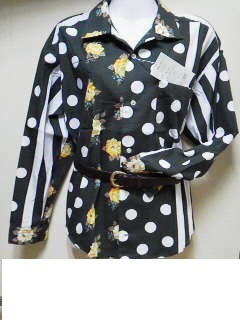 - ●新品綺麗な可愛いグリーン系スッキリ柄シャツブラウスMLフリーサイズ