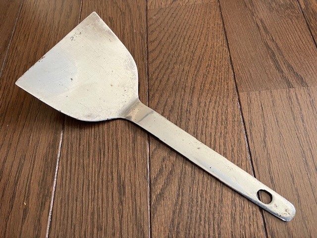 - Kaicut コテ こて ステンレス お好み焼き モダン焼き 鉄板焼き 長22cm 幅9.2cm 75g アウトドア 昭和 当時物 送料無料 底値