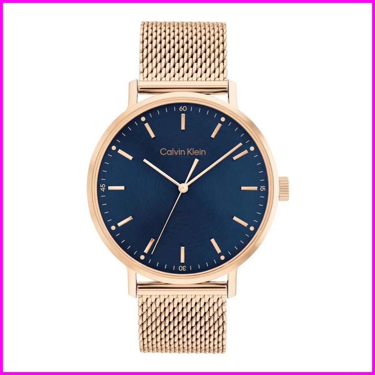 > 【カルバンクライン CALVIN KLEIN 】 ブルー文字盤 ローズゴールド メッシュベルト クォーツ 25200314