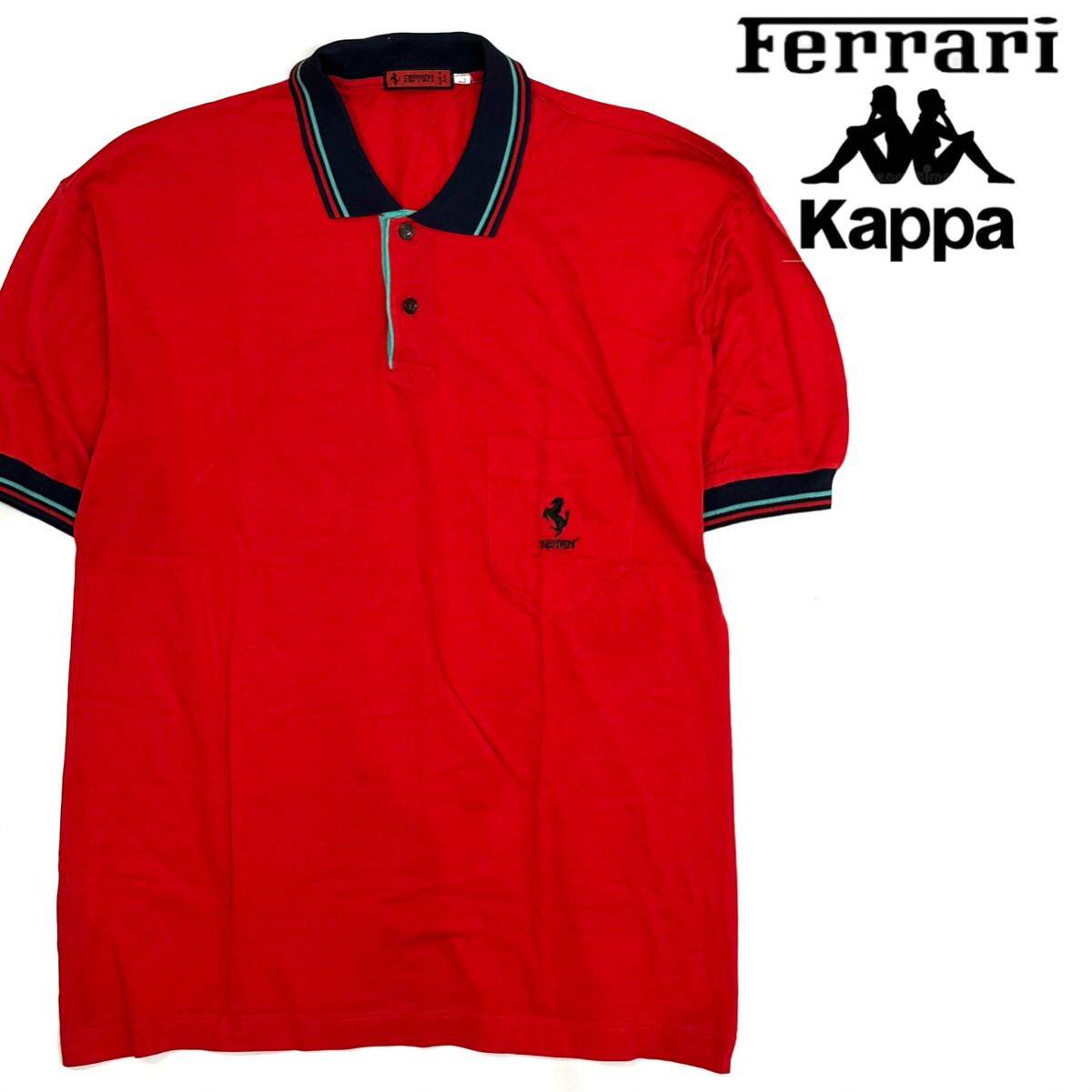 - 美品!!80's vintage イタリア製 Ferrari Kappa ポロシャツ(L)レッド 赤 メンズ トップス 半袖シャツ フェラーリ