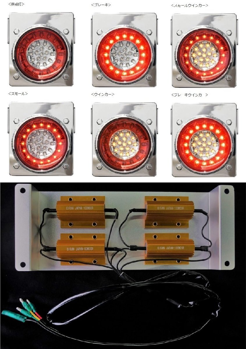 > 【送料無料!】★花魁JAPAN 32LEDテールX6個 ウインカータイプ レッド/クリア(OWRC-M1)+3連ウインカーリレーセット★24V車用抵抗器付き