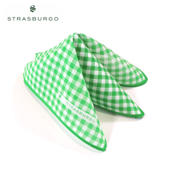 > 【定価1,800・新品】STRASBURGO(ストラスブルゴ)コットンポケットチーフ グリーンギンガムチェック 43cm×43cm 日本製