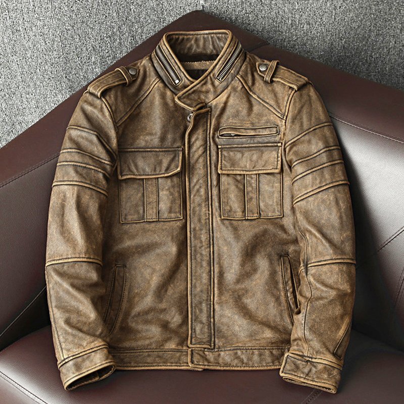 - レザージャケット メンズ バイクジャケット ユーズド加工 ライダース 高級牛革 本革革ジャン S~5XL LD137