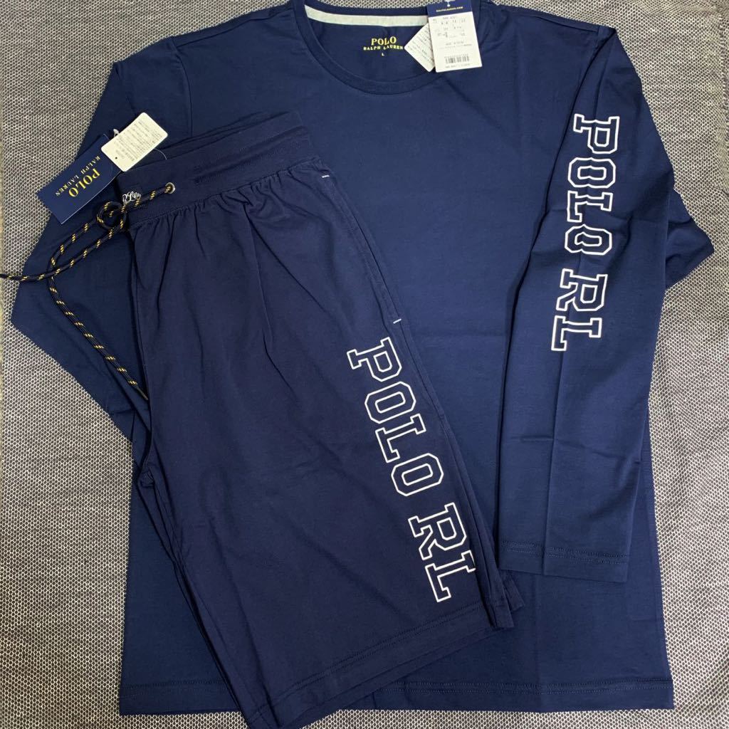 > 新品 ラルフローレン 長袖シャツ+ハーフパンツ Lサイズ ルームウェア パジャマ 上下セットセットアップ 紺38