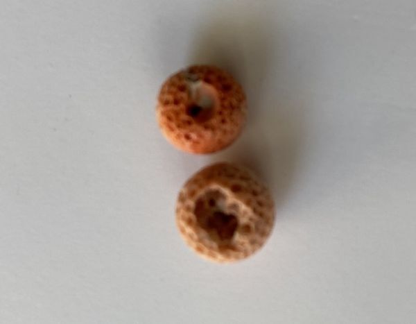 サイズ:直径約1.8mm、約1.7mm 海の中で、倒れた珊瑚は時間の経過と共に、色があせ、穴が開き、風化していきます。 この現象のことを「す」「虫食い」「枯れ」と言い、このような珊瑚のことを「虫食い珊瑚」と言います。 この反対に、海の中で生きていた珊瑚のことを「生木」と言います。 アクセサリーを作る方素材として如何でしょうか